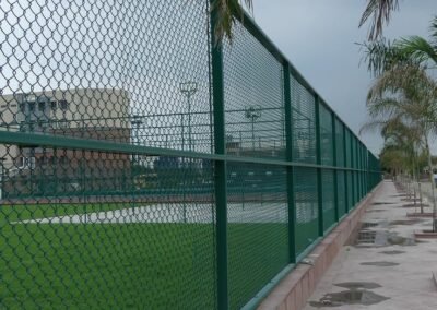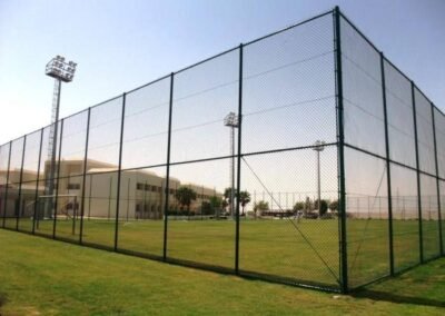 تُستخدم في الملاعب الرياضية لمنع خروج الكرات وضمان السلامة، وتكون غالباً بارتفاعات مناسبة وشبك قوي مقاوم للصدمات.