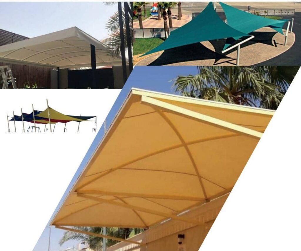 مظلات سيارات : لحماية المركبات من الشمس والمطر.